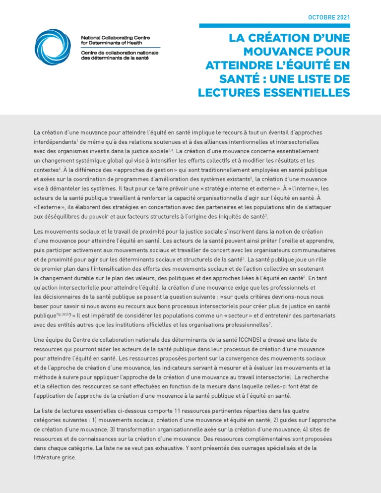 Renforcer les liens communautaires : l’avenir de la santé publique se joue à l’échelle des quartiers – sommaire