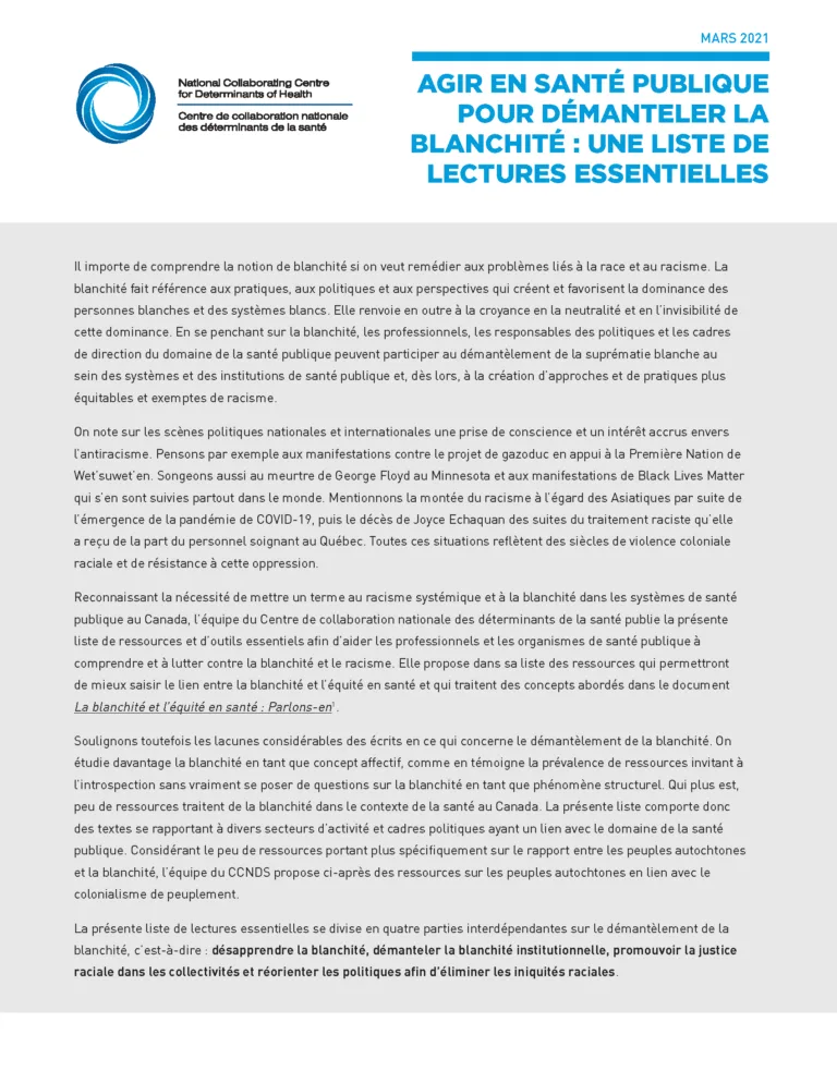 Comment la blanchité façonne les soins infirmiers au Canada – qu’en dit la littérature? Une revue rapide