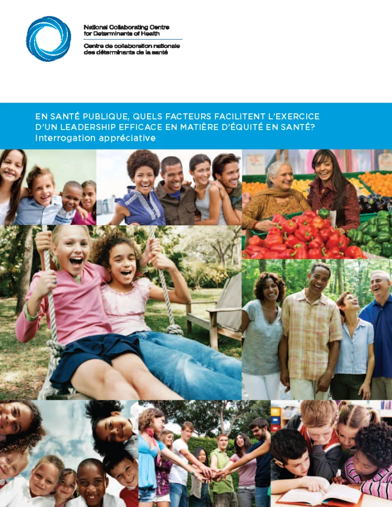 Ce projet visait au départ à cerner les facteurs ou les conditions influant sur l’exercice d’un leadership efficace en santé publique pour favoriser l’équité en santé. On a mené des entrevues auprès de 14 leaders de la santé publique au Canada et on a noté les thèmes à l’aide de la méthode de l’interrogation appréciative.