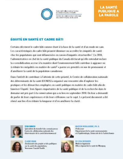 Dans cette ressource La santé publique a la parole, découvrez le pouvoir de transformation de l’organisation communautaire en santé publique et l’avis d’experts sur la création de partenariats, l’élimination des obstacles et le plaidoyer pour l’équité en santé.