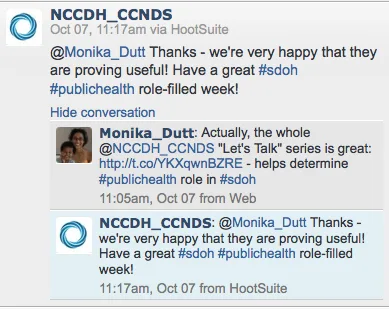 Social media represents more than a set of tools and technologies that connect people to information and each other. Rather, social media represents a simultaneous return to the roots of health promotion and a paradigm shift in health communications. Social media tools may enhance public health efforts to engage the public, collaborate across sectors, and exert influence. This blog, along with a webinar and online conversation, will look at social media and its emerging role in supporting public health to exchange knowledge on the social determinants of health and take action to advance health equity.