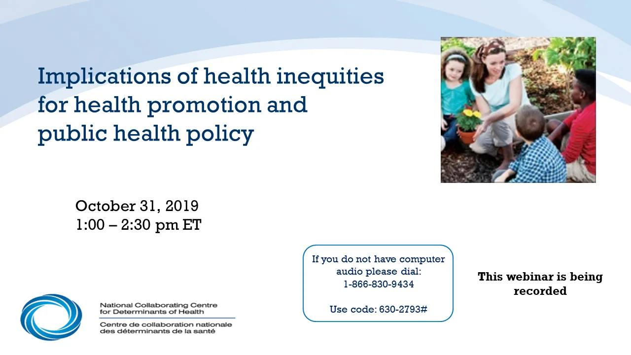 Le webinaire fait partie d’une série présentée par le Centre de collaboration nationale des déterminants de la santé (CCNDS) et Promotion de la santé Canada (PSC) sur le livre publié en anglais et intitulé Promoting the Health of Older Adults: the Canadian Experience.