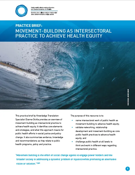 Le CCNDS vient de publier un mémoire qui traite de l’importance d’ancrer les efforts de création d’une mouvance pour favoriser l’équité en santé dans des alliances intentionnelles et efficaces avec des organismes de justice sociale et de corriger les déséquilibres du pouvoir dans les relations intersectorielles. La santé publique joue à ce titre un rôle de premier plan en soutenant les démarches de mouvance sociale et d’action communautaire qui mènent à un changement durable dans les valeurs et les politiques qui sont essentielles au changement systémique nécessaire pour atteindre l’équité en santé.