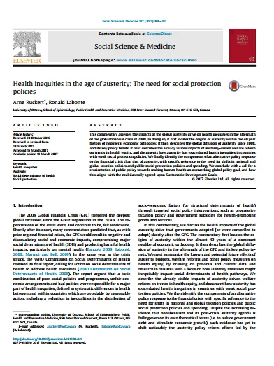 In this analysis from University of Ottawa researchers Arne Ruckert and Ronald Labonté, the authors address the impact that the austerity measures taken in response to the 2008 global financial crisis had on social policy and health equity.