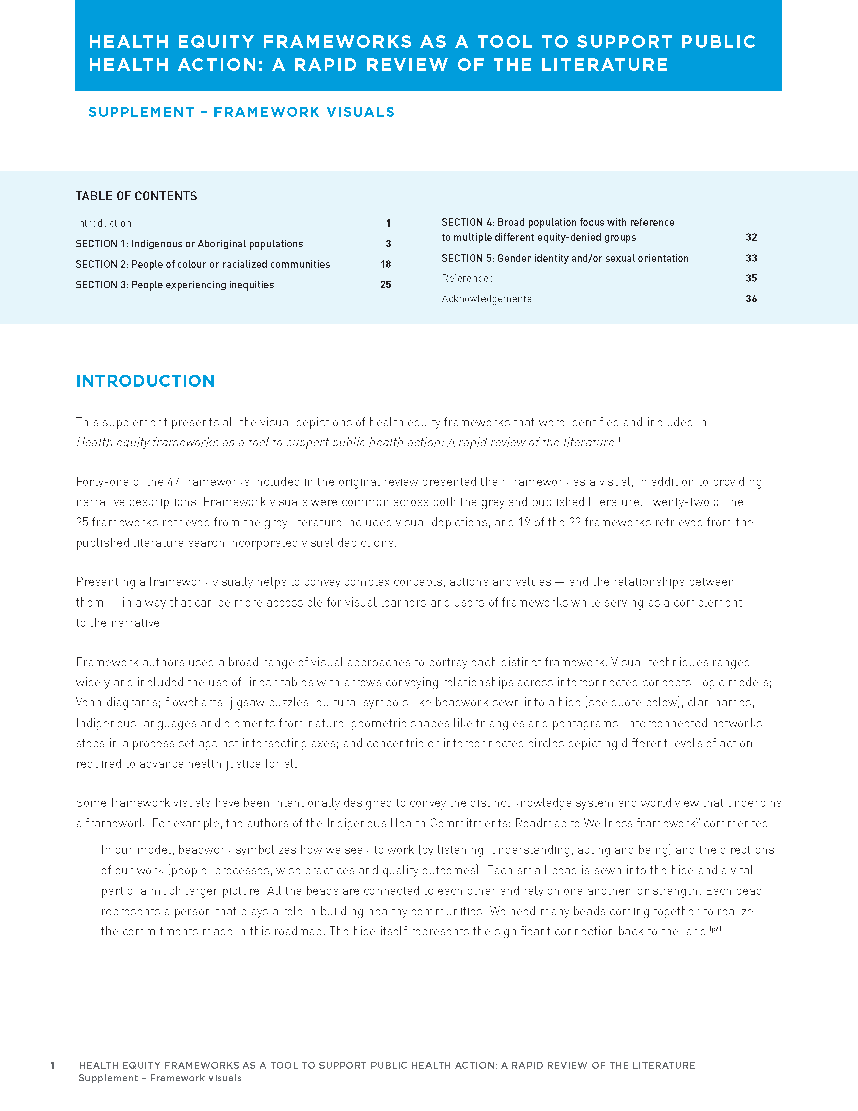 Data extraction tables and detailed search strategy for this literature review, and a list of other frameworks of interest are available in English upon request. For access to these documents, please email nccdh@stfx.ca.