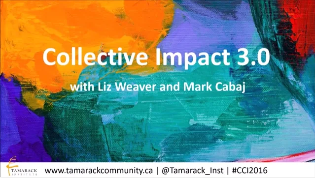 This webinar will be of interest to anyone looking to learn more about working with community to make change; however, we recommend you read Collective Impact 3.0 from the Tamarack Institute before attending, or watch the video below in which Liz Weaver and Mark Cabaj of Tamarack share their insights about the evolution of collective impact and what it will take to get to transformative community change.