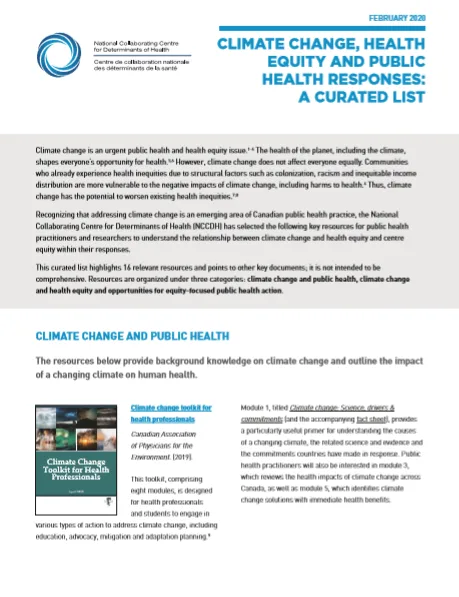 | Making equity real in climate adaptation and community resilience policies and programs (2019) | Commentary: “Centring equity in emerging public health responses to climate change” (2020) |